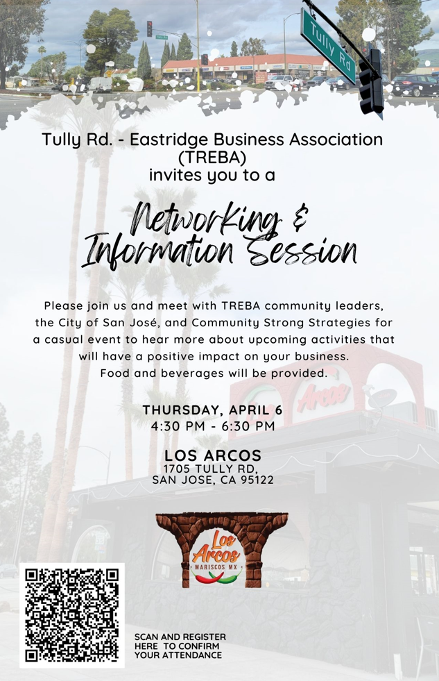 Please join Tully Road Eastridge Business Association ( TREBA), community leaders, the city of San Jose and Community Strong Strategies for a casual event