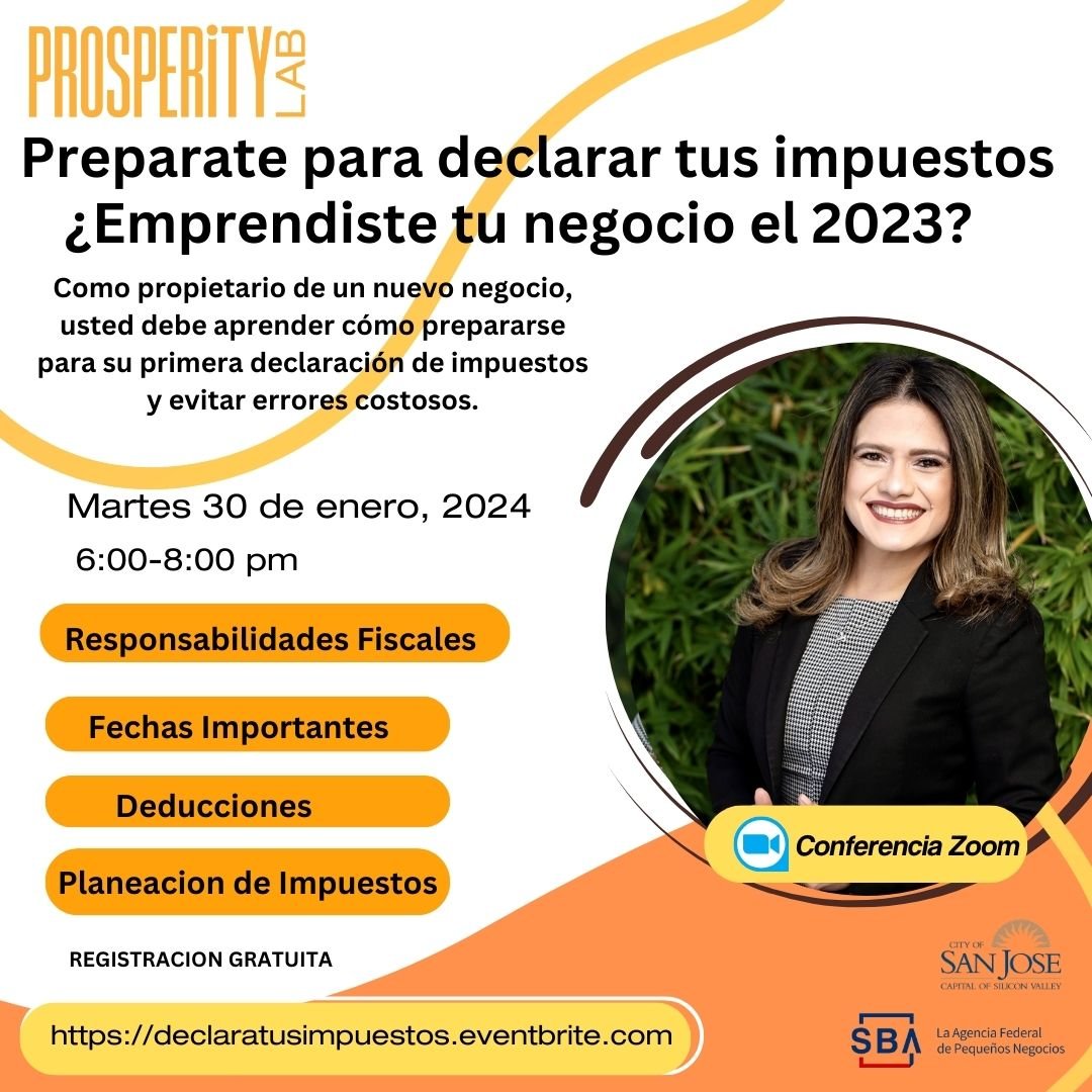 martes 30 de enero, 2024 6:00-8:00 pm Como propietario de un nuevo negocio, usted debe aprender cómo prepararse para su primera declaración de impuestos