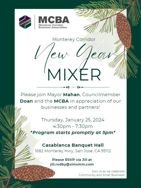 On behalf of the Monterey Corridor Business Association (MCBA) board of directors, we cordially invite you to our annual Business Mixer! In appreciation to