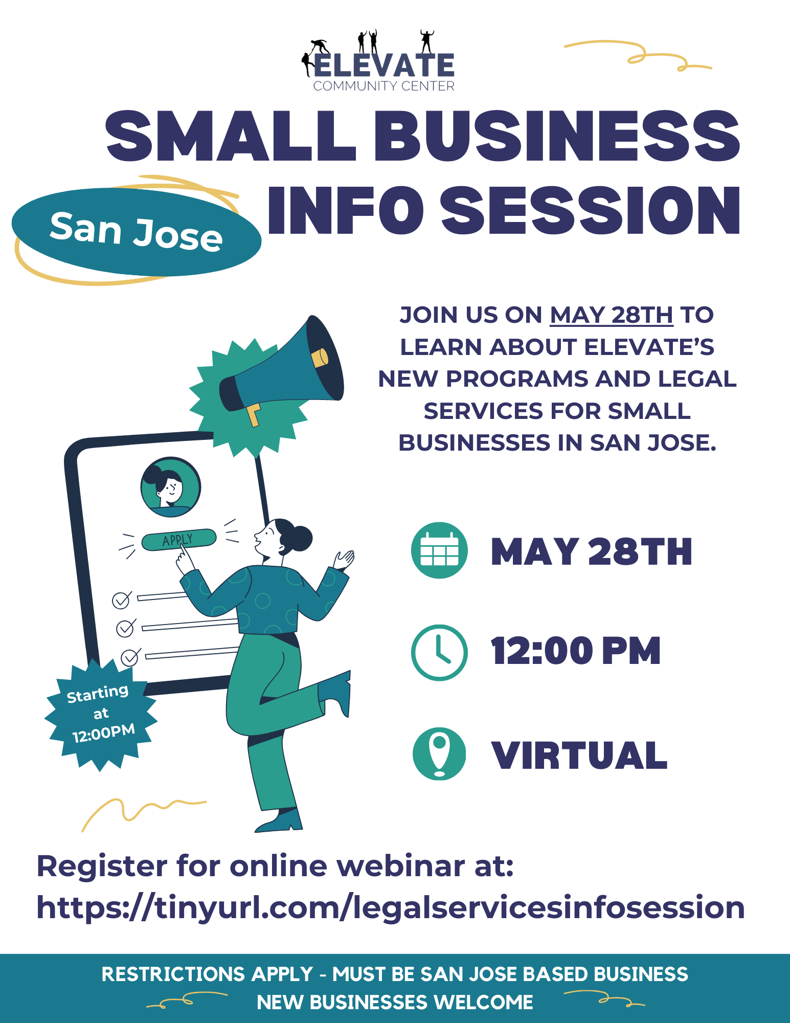 Elevate is partnering with the City of San Jose to provide FREE legal services for San Jose small businesses. Elevate will provide free legal education workshops, webinars, and provide legal services and
