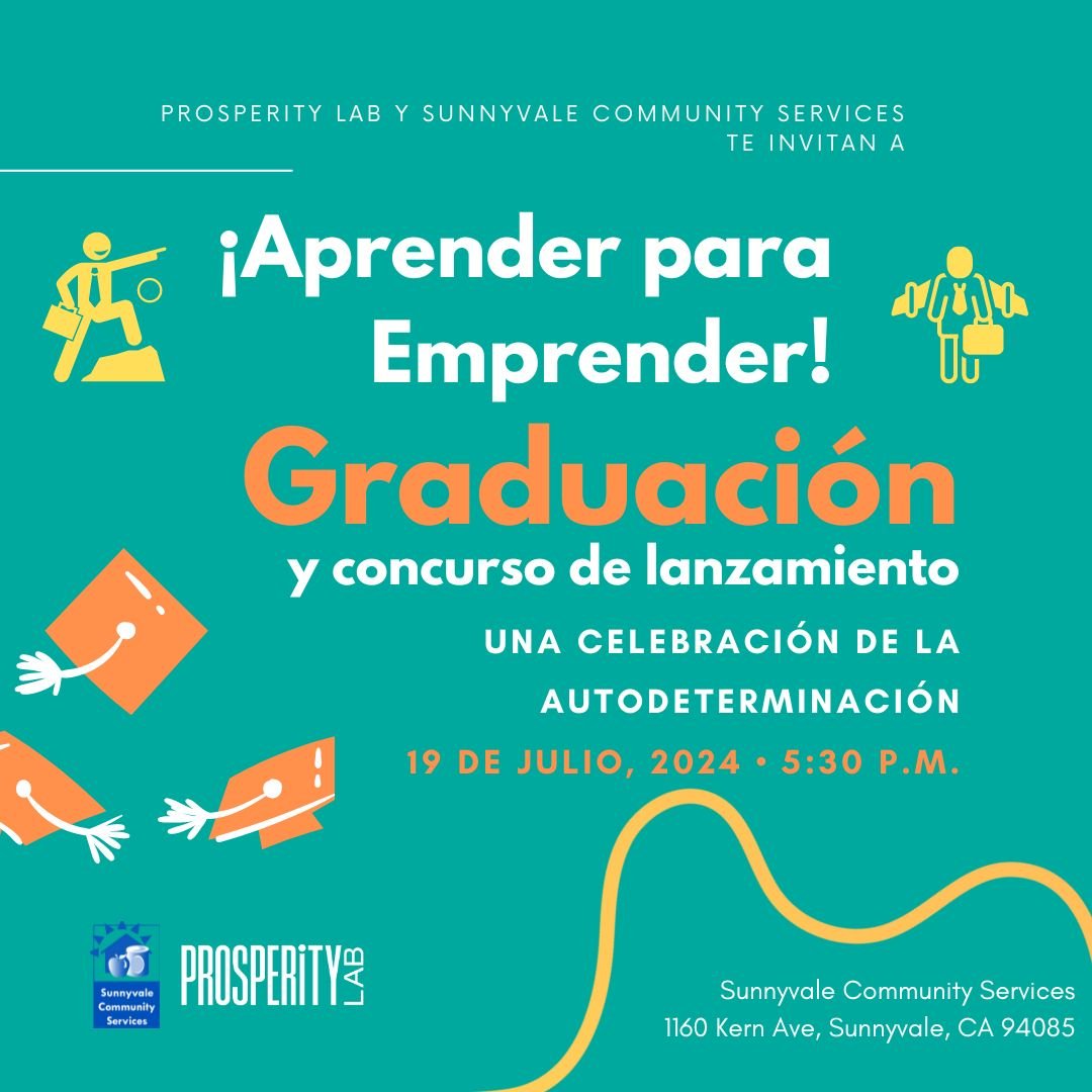 July 19, 2024 @ 5:30 pm - 7:00 pm ¡Aprender para Emprender! Sunnyvale Community Center 1160 Kern Avenue, Sunnyvale, CA Graduation and Celebration of Self Determination + pitch competition
